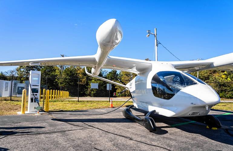 That might surprise you because there aren’t any electric airplanes – not yet, anyway. The Vermont startup that is behind this new charging station, Beta Technologies, hopes to change that. It has plans to roll out a small electric plane next year and a vertical takeoff-and-landing electric plane in 2026.