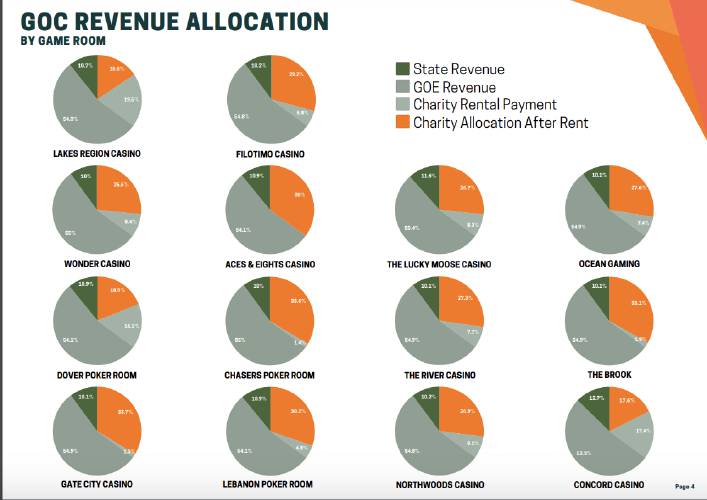 Between January and November, charities raised nearly $2.8 million through both types of gaming before paying rent, according to the New Hampshire Lottery Commission. Casinos collected nearly $11 million in that time, and the state took in $2.2 million.