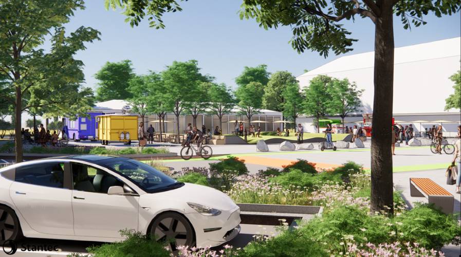 Without an interstate exit at Sewall Falls, traffic flow is a concern — and was a point of inquiry at Thursday’s event. Plans for the project include a new road running parallel to the highway connecting it to Merchant’s Way, and a traffic study is supposed to wrap up this month, according to Lacasse. The property, currently zoned industrial, will also have to be reclassified before it gets moving.